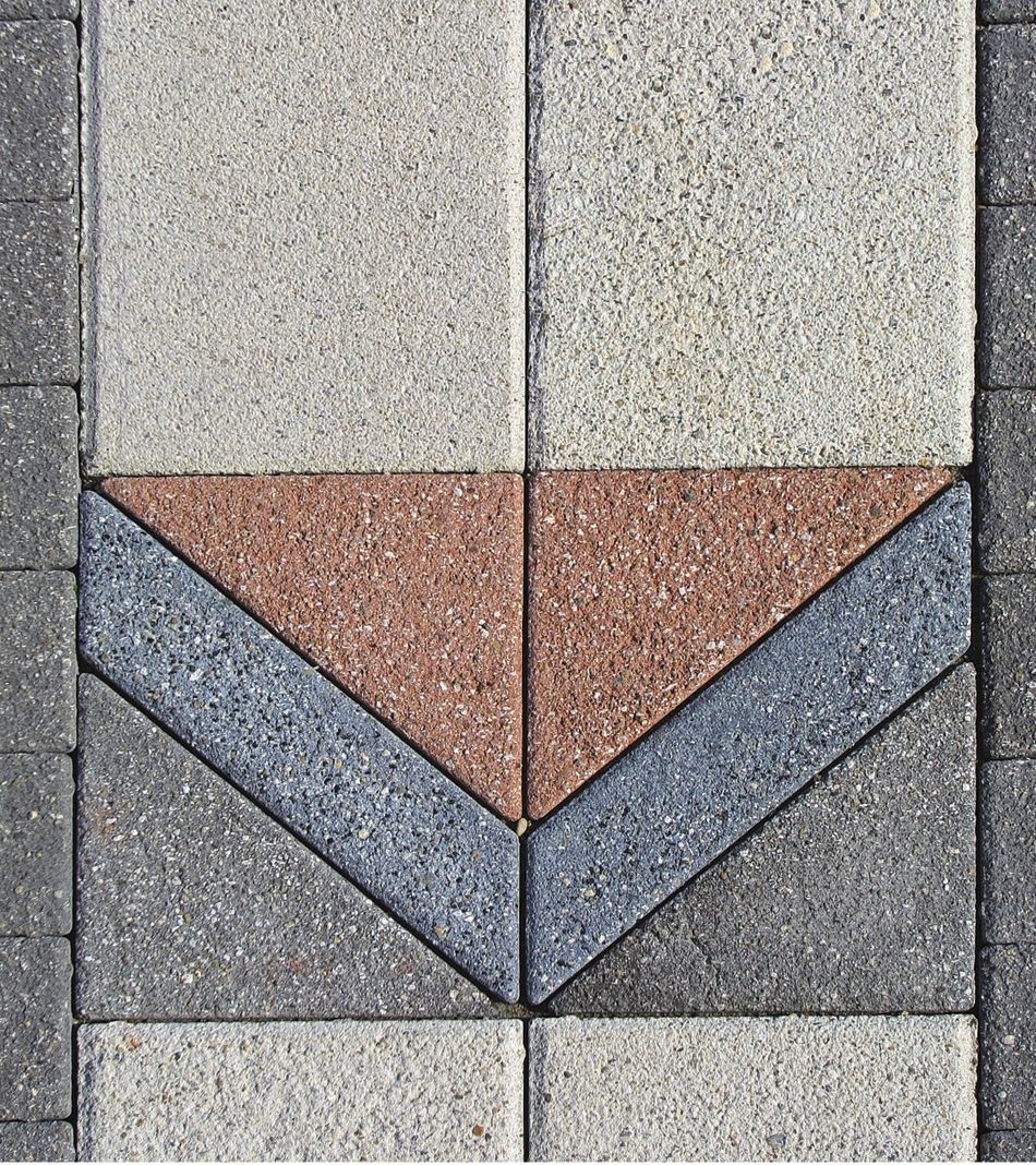 Opločnici Intarzija dostupni su u dvije trokutaste dimenzije s dijagonalama za lijevu i desnu stranu, čime je omogućeno stvaranje različitih estetskih rješenja na širokom spektru javnih i privatnih površina. Kombinacijom s proizvodnim programom Classic, specifične dimenzije i raznolikost završnih površinskih izgleda elemenata iz ove linije opločnika omogućuju kreiranje složenih dekorativnih struktura prilikom polaganja. Kombinacija opločnika Intarzija s bogatom paletom boja i završnih obrada betonskih opločnika iz linije Classic otvara nebrojene mogućnosti za ispunjavanje najzahtjevnijih estetskih standarda.
